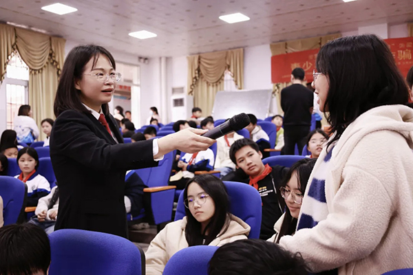 除了城郊法庭庭长的身份,吴素芬还有一个特别身份——法治副校长。作为一名母亲,她更能理解青少年成长过程中的需求与困惑;作为一名法官,她深知法治教育对青少年未来的重要意义。为此,她创新普法形式,让法律知识不再是枯燥条文,在青少年心中播撒法治的种子,默默守护他们的成长之路。
