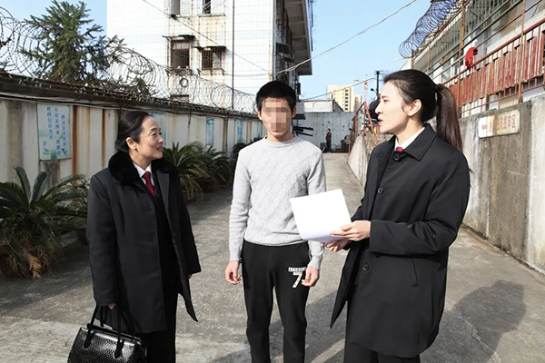 朱秀敏(右)和“时代先锋”詹红荔和到看守所迎接新生少年回归社会