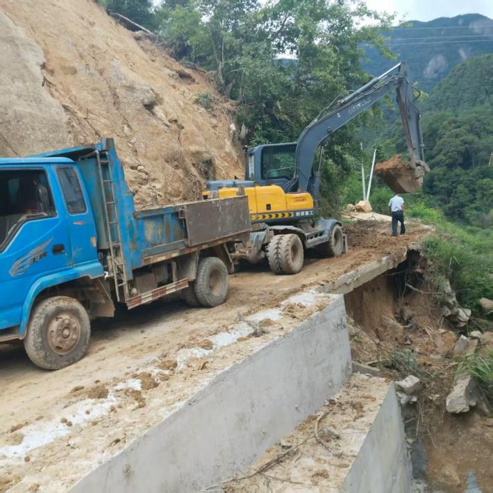 工作组联系施工队冒险抢修欧上村被毁的乡村道路。