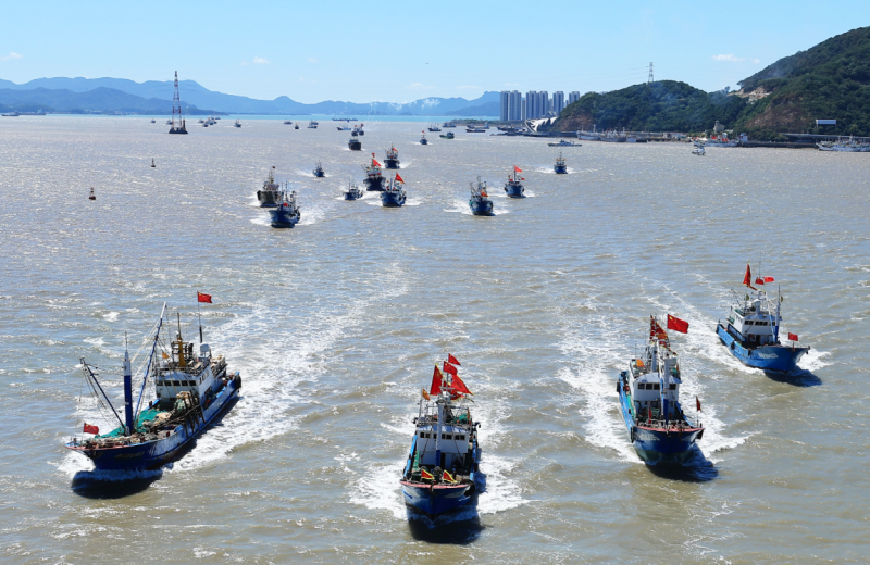 9月16日12时,历时四个多月的东海伏季休渔正式结束。千帆竞发,百舸争流,蔚蓝的海面上绽放出朵朵浪花,一艘艘渔船从浙江沿海的各个渔港昂首出航,在波光粼粼的海面上划出优美的弧线,撒下开渔后的“第一网”,开启新的丰收征程。