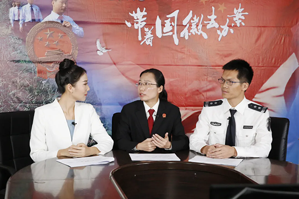 同安法院法官和渔政执法人员对庭审直播进行现场解析