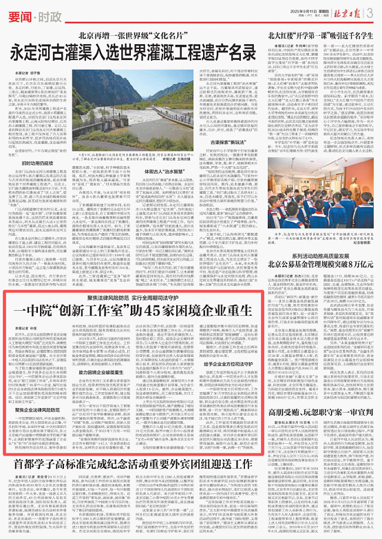 为了助力像安德医智这样的困境企业破茧重生,给予更多企业全生命周期司法守护,一中院聚焦企业法律风险防范,成立“职工创新工作室”,在两年多的时间里挽救了45家中小企业,编写出版的《企业全流程法律风险防范指引》成为万千企业加强管理防范风险的精准指南。近日,该创新工作室获评“北京市级职工创新工作室”。