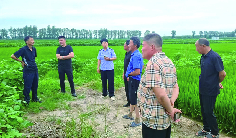 在大洼区新兴镇,司法所工作人员在田间地头开展调解工作。