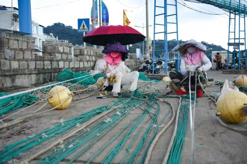 开渔前,东门渔村渔嫂们正赶工编织渔网