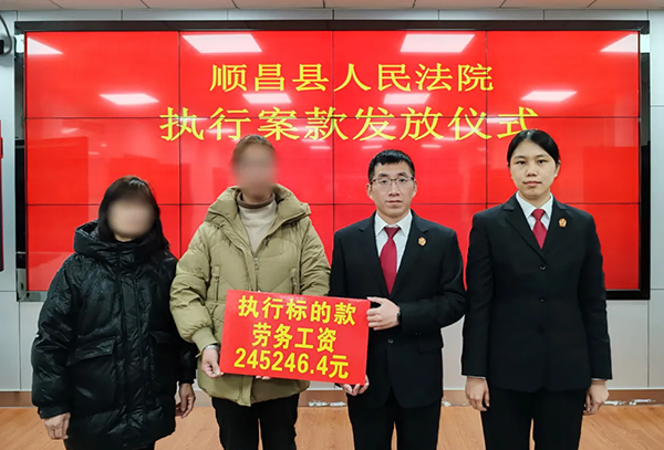 今年以来,顺昌法院聚焦工人欠薪问题,以“善意文明执行”为理念,构建起“府院联动+专项执行+绿色通道”的立体化工作机制。截至目前,共执结工人讨薪案件34件,追回欠薪1217.09万元。从预售资金监管账户的“破壁”,到八年积案的“破冰”,再到小额欠薪的“速破”,执行干警用一个个生动案例,书写着司法为民的“薪安”答卷。