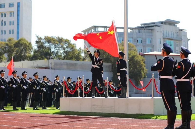 在44名新警组成的国旗护卫队护送下,五星红旗冉冉升起,警旗迎风招展,全场肃立高唱国歌,庄严氛围浸润整个赛场。