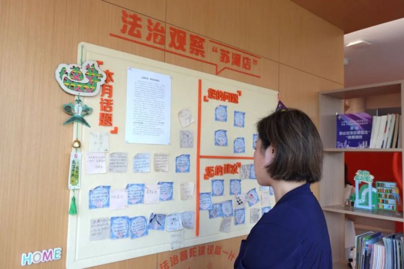 作为宣传阵地,驿站构筑理论学习高地,通过沉浸式主题宣讲,将普陀红色工运历史与法治文化有机融合,使理论学习生动而富有实效;作为服务平台,驿站集聚专业人才资源,广泛吸纳律师、公证员、人民调解员、心理咨询师等组建“法治合伙人”队伍,常态化开展“坐堂问诊”;作为“加油站”,驿站强化基层治理能力建设,通过常态化开展“法治带头人、法律明白人”培训,运用“以案说法”及情景模拟,提升基层干部法治素养与纠纷化解能力。同时,设立法治观察“苏河店”,通过建议信箱与留言板等渠道,建立民意直达机制。围绕“老旧小区加装电梯”“社区宠物管理”等治理难点,引导居民由“旁观者”转为“参与者”,通过“议题征集—分析研判—成果转化”闭环机制,推动出台了《既有住宅更换电梯软法指引》等制度性成果。