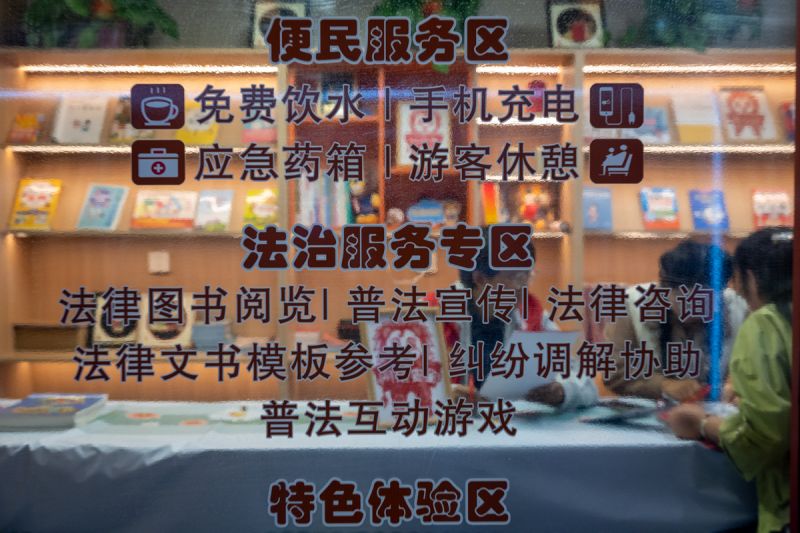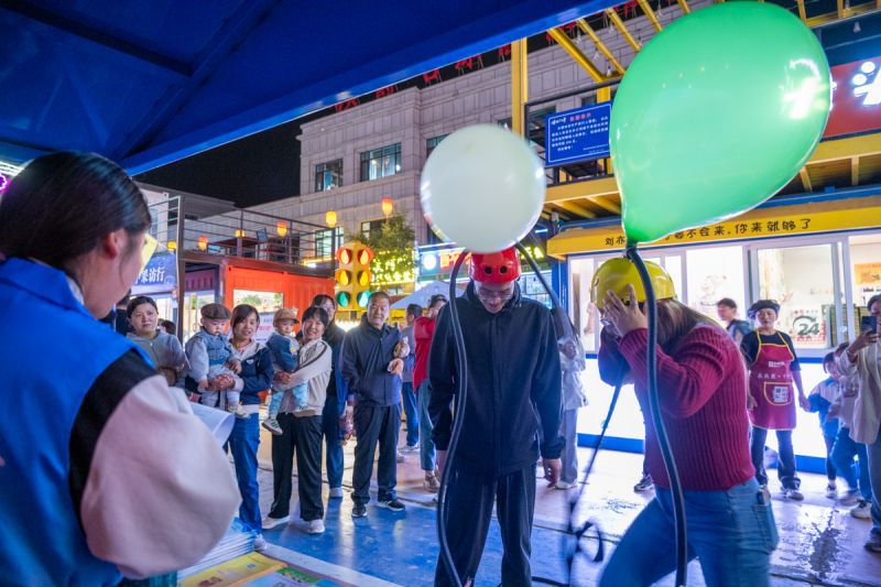 “套中了!”法治文化集市中欢呼声不断。彭阳县司法局、公安局、法院、检察院等化身“法治摊主”,在夜市中支起普法摊位,向采访团及过往群众普及宪法、民法典、未成年人保护法等与民生息息相关的法律法规。