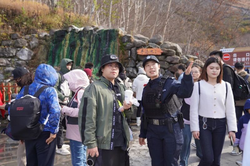 “警察同志,我的腿擦伤了,可不可以帮我处理一下?”“我的手机没电了,能帮我充会儿电吗?”在温泉广场警务室,民警潘阳刚为一名在栈道不慎摔倒的游客仔细消毒包扎,又麻利地接过下一个游客的手机。旅游警务管理队依托分布在主要景点的3个警务室,构建起一张覆盖全景区的“快速响应网”,实现矛盾纠纷就近调处、游客求助就近响应。与此同时,各警务室还常备热水、应急药品、充电器等便民物资,让每一位走进警务室的游客都能感受到无微不至的关怀与贴心周到的服务。