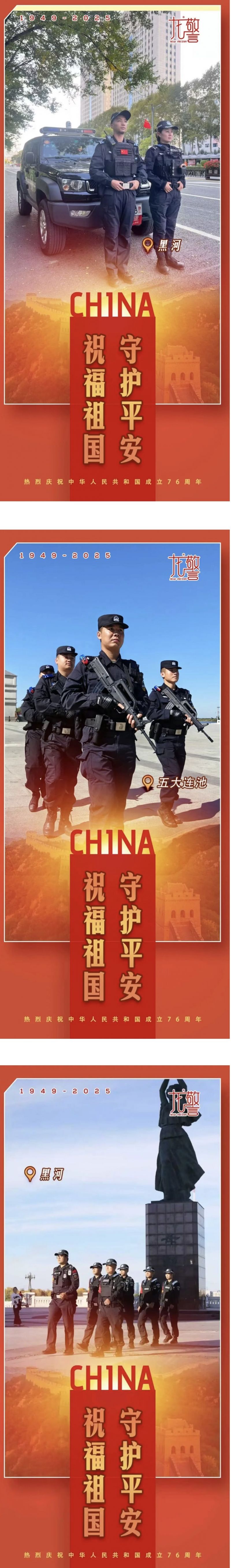 金秋十月,举国同庆,黑龙江省黑河市公安局民警辅警以“警察蓝”献礼“中国红”,他们用责任诠释初心,以担当书写忠诚,在这个特殊的日子里,以最朴实的方式,向祖国献上最深情的告白。