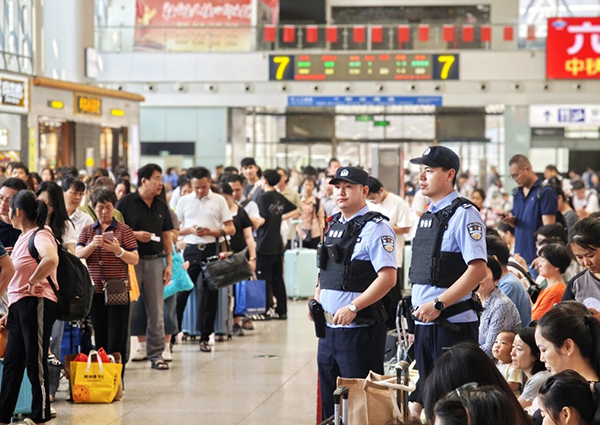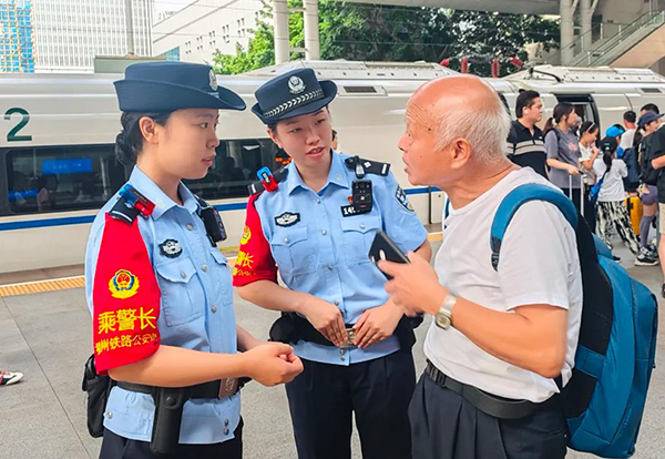 国庆期间,福州南站派出所全员上岗,在保障站区乘降秩序稳定的同时,开展为民服务。