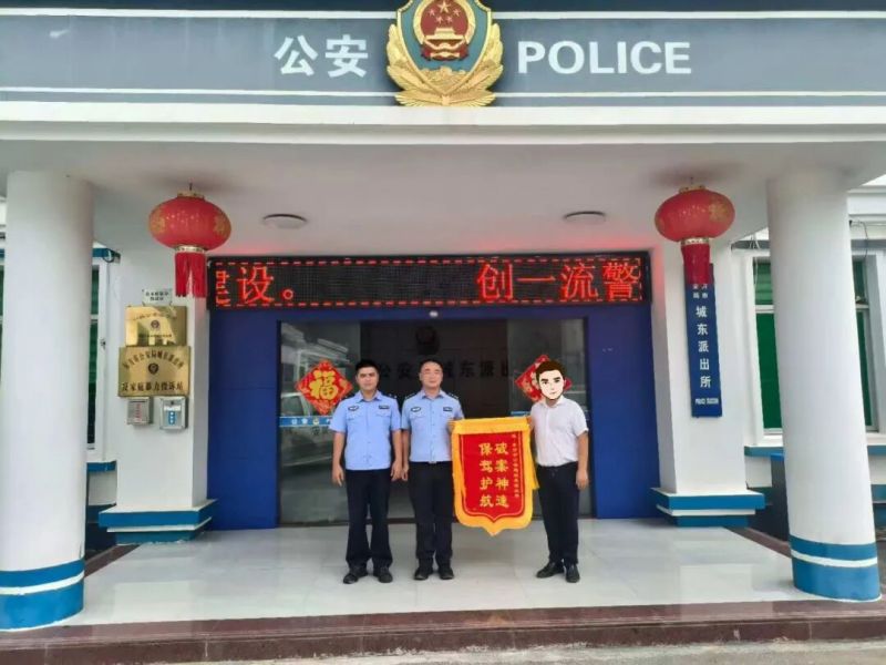 近日,八所镇一工地负责人拿着一面印有“破案神速保驾护航”字样的锦旗走进城东派出所,对民警、辅警快速响应、全力护企的工作态度表示高度赞赏。