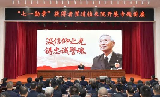 为落实专业人才培养“道植计划”,从源头放大龙警英模群雕效应,近日,黑龙江公安警官职业学院邀请“七一勋章”获得者、我国第一代刑事技术警察、中国首席枪弹痕迹鉴定专家、学院终身名誉教授崔道植来院作《汲信仰之光铸忠诚警魂》专题讲座,全院师生聆听讲座。