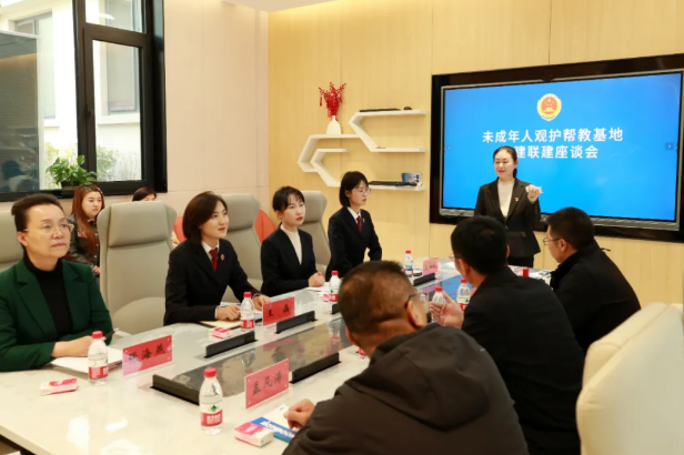 参观环节结束后,各方代表移步红色议事厅,随即召开了主题鲜明、共识凝聚的党建联建座谈会。与会领导围绕基地共建的意义与未来规划畅所欲言,一致认为必须汇聚各方优势通过组织联建、基地联创、帮教联动、文化联育等方式,找准各方履职履责的契合点,通过组建“检察官+心理咨询师+家庭教育指导师+社工”团队,为涉罪未成年人定制“法律宣讲+心理疏导+家庭监督+技能培训”帮扶方案,实现各单位间的优势互补、工作联动、辐射联带,共同筑就未成年人保护的坚实防线,共同帮助罪错未成年人改过自新、回归社会。