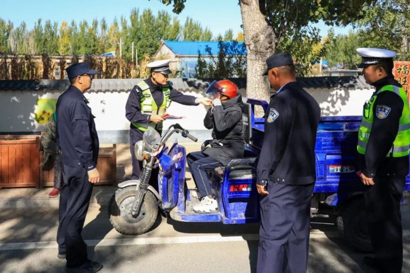 “亮尾行动”同步在田间地头推进,民警辅警为未粘贴反光标识的农用车、三轮电动车免费补贴反光贴,检查车辆灯光、刹车等,确保“车尾亮起来,安全有保障”。