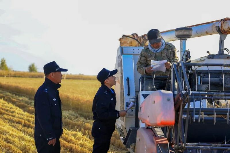 秋收期间秸秆干燥、农机作业频繁,火灾隐患风险陡增。镇赉县公安局组织民警辅警深入收割现场、农机合作社、粮食临时存储点等重点区域,开展“拉网式”隐患排查。“收割时秸秆碎屑多,千万别在田间抽烟,加油时一定要远离火源!”民警一边为农机手发放防火宣传手册,一边现场演示灭火器使用方法,切实增强农户防火意识。
