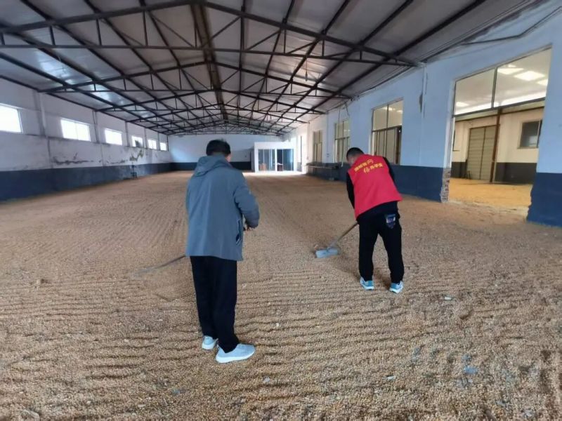 网格员积极对接爱心企业开放车间、厂房作为“共享晒场”,精准协调履带式收割机下地抢收,确保农机服务不断档;依托粮食应急烘干中心,助力推广粮食烘干服务,形成从“田间”到“烘干点”的无缝衔接,全方位守护粮食品质和农户收益。