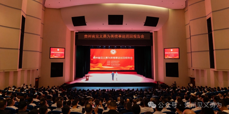 由贵州省委政法委主办、省见义勇为基金会承办的见义勇为英模巡回宣讲活动,自9月初启动以来,从毕节市会议中心到贵州民族大学,从遵义医科大学到茅台酒厂,走进六盘水、安顺、黔东南、铜仁、贵阳等地。15场报告会,102人次深情讲述,上万名听众现场聆听,数万人在线观看——英模们用沾满烟火气的朴实语言,将生死瞬间的抉择与日复一日的坚守,化作点亮人心的璀璨星光,在贵州大地上奏响了一曲曲荡气回肠的英雄赞歌。