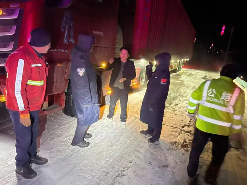 刚撒下的融雪盐,很快就被新落下的雪覆盖,救援如同与时间赛跑。民警们反复弯腰铲雪、撒盐,冻得通红的双手始终没有停歇,额头的汗水在帽檐凝结成霜。经过两小时奋战,五辆卡车终于脱困。“多亏了你们!”司机紧握民警冰冷的手,声音里满是劫后余生的庆幸。
