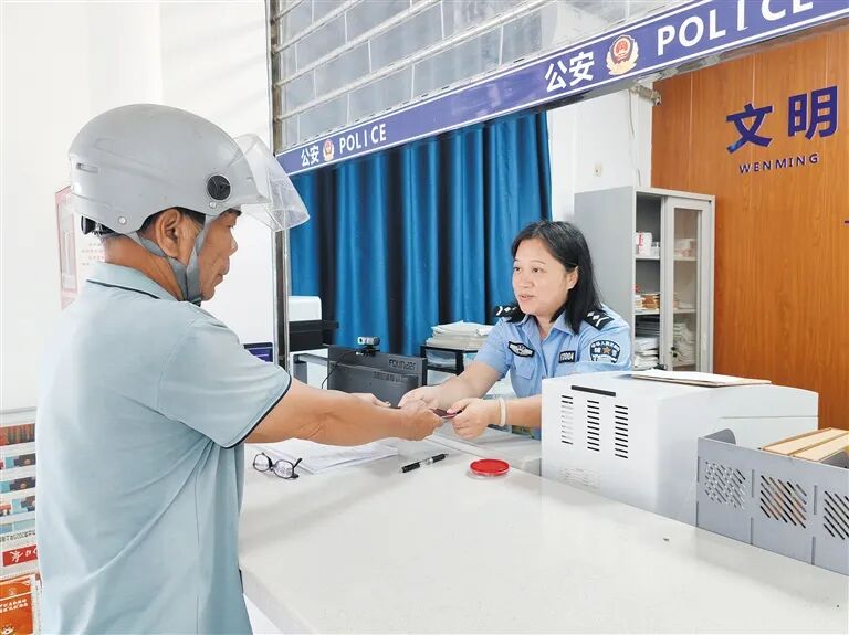 红毛派出所工作人员将王女士户口簿交到其哥哥手中。记者黄君 摄