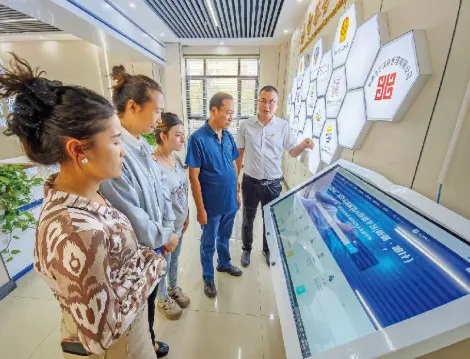 9月15日,喀什“法智谷”法律服务平台工作人员向来访群众介绍平台功能及操作流程。石榴云/新疆法治报记者赵书城摄