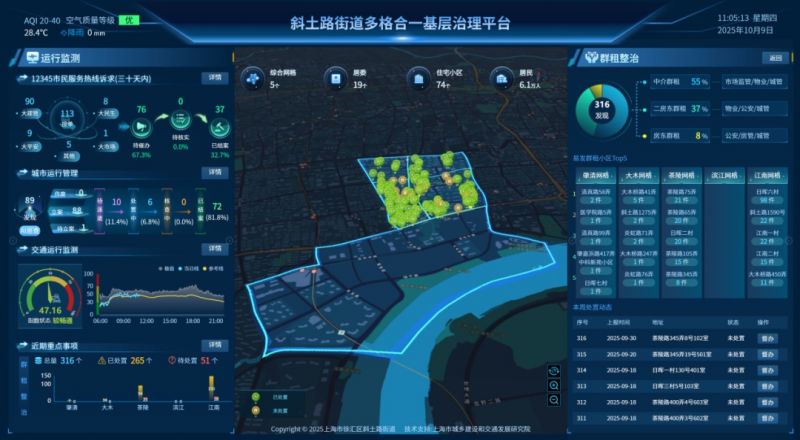 为深入贯彻落实《关于坚持党建引领推进“多格合一”不断探索超大城市基层治理新路的意见》,破解基层治理痛点难点,上海市城乡建设和交通发展研究院与斜土路街道城运中心通过“党建引领、数据整合、科技赋能”,联合研发斜土路街道“多格合一”基层治理平台,推动基层治理模式从“分散管理”向“协同高效治理”转型。
