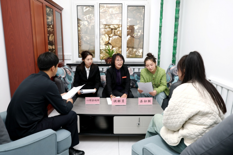 在家事领域,依托“家和话坊”调解室,联合妇联、民政等部门推出“女性调解+心理咨询”服务。此前,一对夫妻因孩子抚养权争执不下,调解员联合心理咨询师、教育专家介入,从孩子成长需求和法律规定入手,最终促成双方和解,实现“案结事了人和”。