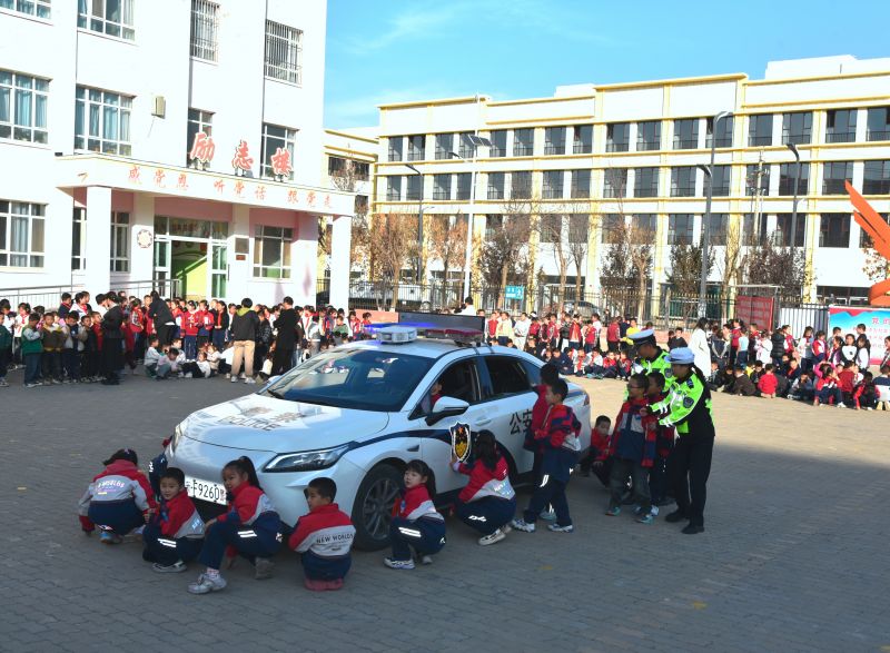 11月3日,新疆伊犁哈萨克自治州新源县公安局交通管理大队交警走进该县第一小学,开展“知危险会避险”主题宣传活动,为孩子们带来一堂生动实用的交通安全课。