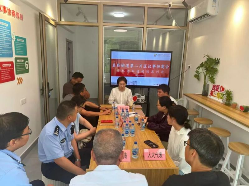 街道人大工委在服务点专设“格心聚力”议事空间,建立“代表牵头、多方参与、现场回应”的协商机制。驻站代表通过常态化走访商户、新就业群体及周边群众,围绕收集到的难点堵点问题,定期组织专题议事协商。