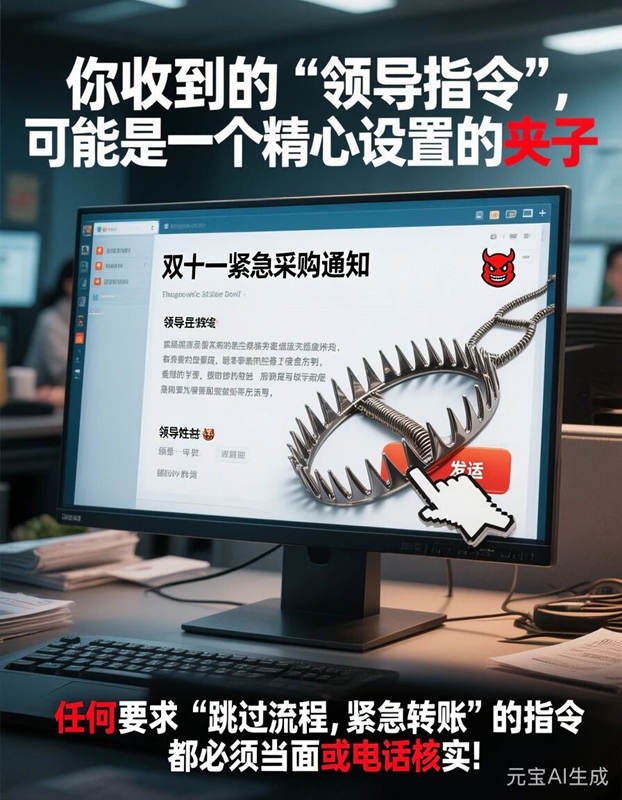 防骗提示:凡是领导要求转账,务必电话或当面确认;遵守财务制度,坚决执行审批流程,不因“紧急”而简化。