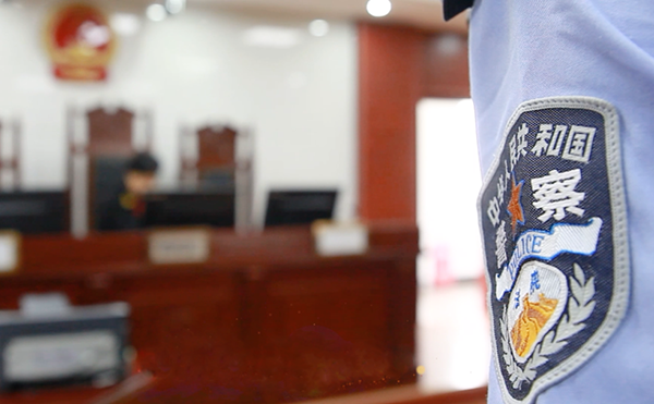 9时,案件如期开庭。被告人轮流接受法庭询问和调查,在他们身后,两名法警目光如鹰,聚精会神地关注着现场动态。汗水已将警服浸湿,法警岿然不动。