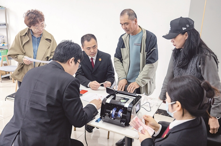 (长春铁路运输中级法院干警前往吉林某农业科技有限公司所在地,为因种子质量问题导致玉米减产的59名农户发放赔偿案款。徐赫 摄)