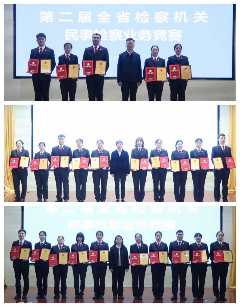 本届竞赛全省共72名民事检察业务骨干参加,经过政治理论与民事检察综合业务知识笔试、民事检察监督案件审查与文书制作、案件汇报与答辩三个环节的激烈角逐,最终司肖肖等5位选手荣获第二届全省检察机关民事检察业务竞赛一等奖,李燕华等10名选手荣获二等奖,谷聪一等10名选手荣获三等奖。