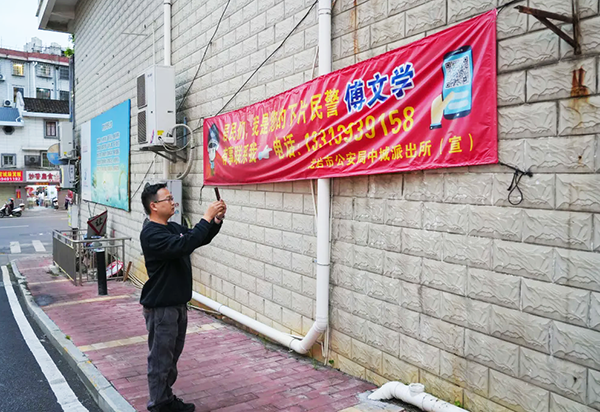 “就是要让群众出门不用特意找,走在路上、进小区、买菜时,都能轻松看到横幅上的电话并存下来。真遇到事了,能马上想起来、拨出去。”紫金山社区民警黄博月说,这样的设计和张贴逻辑,核心就是“让联系信息主动出现在群众视线里”。