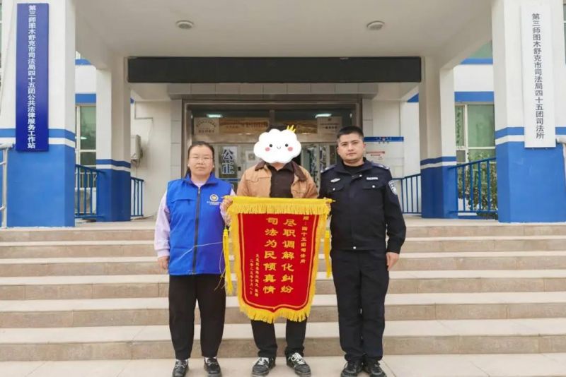 司法的温度从不设界限。10月15日,麦盖提县某农资店经营者鲍某专程赶来,将一面锦旗送至45团司法所。