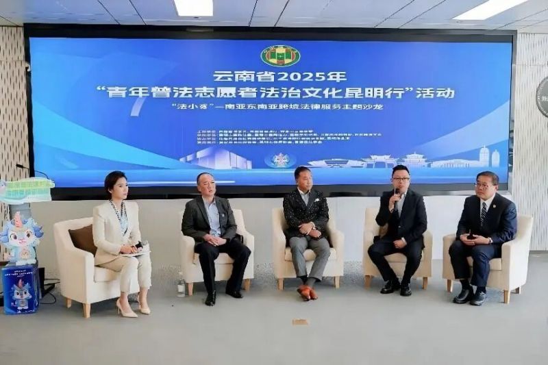 11月14日,云南省2025年“青年普法志愿者法治文化昆明行”启动仪式暨“法小豸”——南亚东南亚跨境法律服务主题沙龙活动在昆明中央法务区举行。活动由云南省法学会、云南省司法厅、共青团云南省委共同主办,昆明市委政法委、昆明市委网信办、昆明市司法局、共青团昆明市委、昆明市法学会承办。
