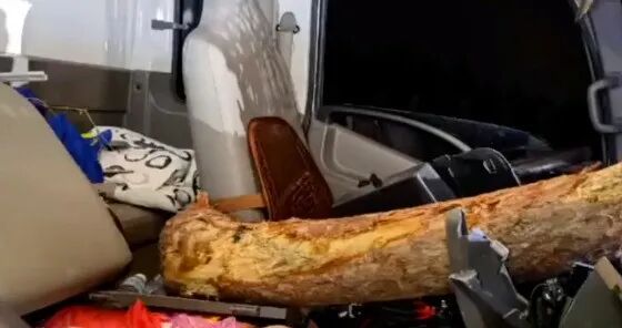 2023年3月,沪昆高速江西萍乡段,对向车道飞来一根木头击穿一小货车驾驶室致人受伤,遗撒货车被认定承担全部责任。