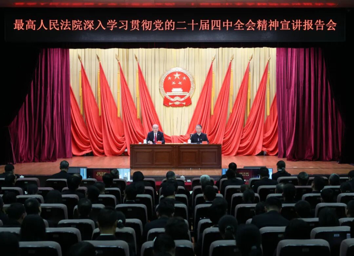 持续深入学习贯彻党的二十届四中全会精神是人民法院的重大政治任务。连日来,最高人民法院通过党组扩大会、全院学习贯彻大会、各党支部“三会一课”等多种形式,推进学习贯彻不断走深走实。11月26日,最高人民法院邀请中央宣讲团成员、全国人大常委会法制工作委员会主任沈春耀为党组和全体干警作辅导报告。最高人民法院党组书记、院长张军主持并讲话。