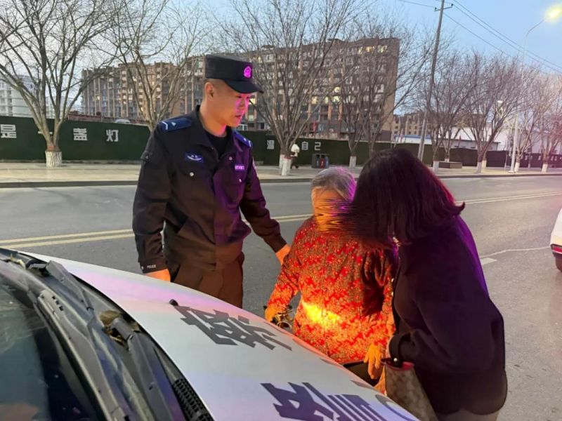 经过半个小时的不懈努力,最终在离家不远的一个公园内找到了神情迷茫、独自徘徊的老人。在确认老人身体无恙后,辅警刘疆小心翼翼地将老人扶上警车,安全送回家中。