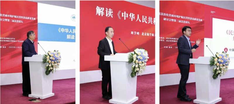 在主题报告环节,专家学者们一同聚焦《中华人民共和国民营经济促进法》开展解读与展望。民盟中央法制委员会主任、北京航空航天大学法学院教授、博士生导师、人文与社会科学高等研究院院长龙卫球,北京航空航天大学法学院副院长周学峰以及中国政法大学教授、博士生导师、民商经济法学院经济法研究所所长张钦昱,依次作了精彩的专题报告,从立法背景与理论高度出发,系统阐释了《中华人民共和国民营经济促进法》中“平等保护”“公平竞争”等核心原则与“非禁即入”等一系列制度创新,清晰勾勒了该法的宏观脉络与突破性价值。同时,聚焦法治政府建设,紧密结合首都核心区发展实际,深入剖析了法律落地实施的关键路径与可能面临的挑战,为探索形成《中华人民共和国民营经济促进法》实施的“西城样本”提供了宝贵的学术支撑与实践思路。