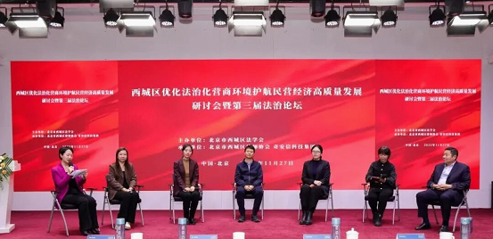 11月27日,北京市西城区优化法治化营商环境护航民营经济高质量发展研讨会暨第三届法治论坛举行。本次论坛聚焦“优化法治化营商环境护航民营经济高质量发展”,由西城区法学会主办、区律师协会承办。中国法学会副秘书长、《民主与法制》社党委书记、社长尹宝虎,北京市法学会党组成员、专职副会长兼秘书长雷建权,西城区委常委、区委政法委书记、区法学会会长高云飞,副区长邴浩出席。