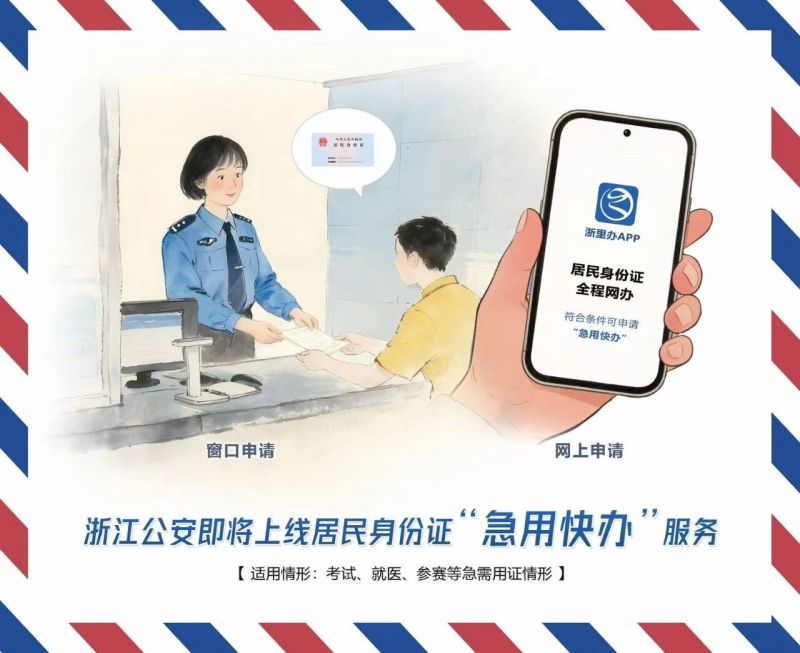 11月28日,记者从省公安厅居民身份证制作中心获悉,自12月1日起,居民身份证“急用快办”服务将在“浙里办”APP正式上线。该服务着力破解群众在考试、参赛、省外就医等特殊情况下的用证燃眉之急,申请后3至5个工作日即可领证,切实便民利民。