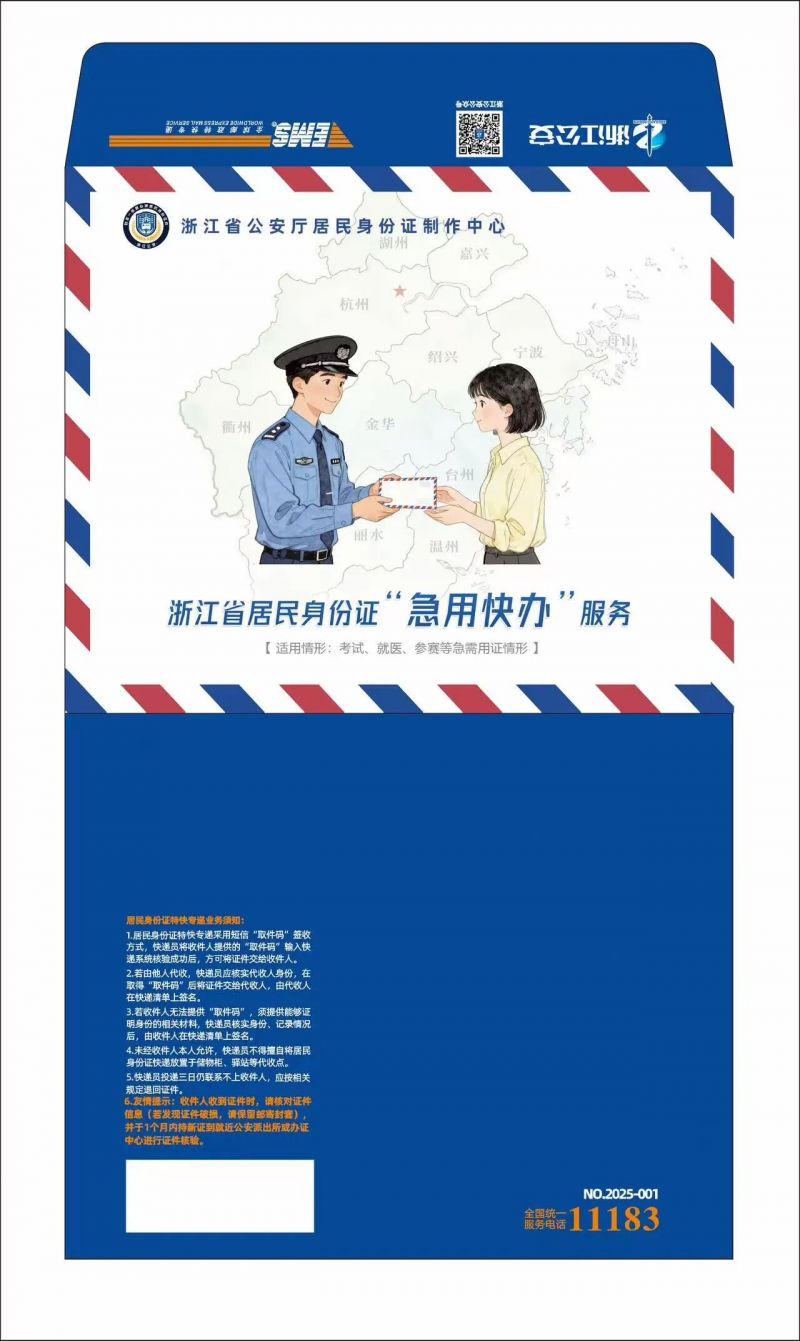 服务正式上线后的专属封(如图),将与普通身份证邮封相应区别,加快处理。