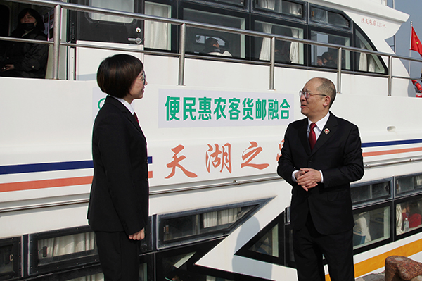 检察官登船了解“便民惠农客货邮融合”轮渡船运输快递实况