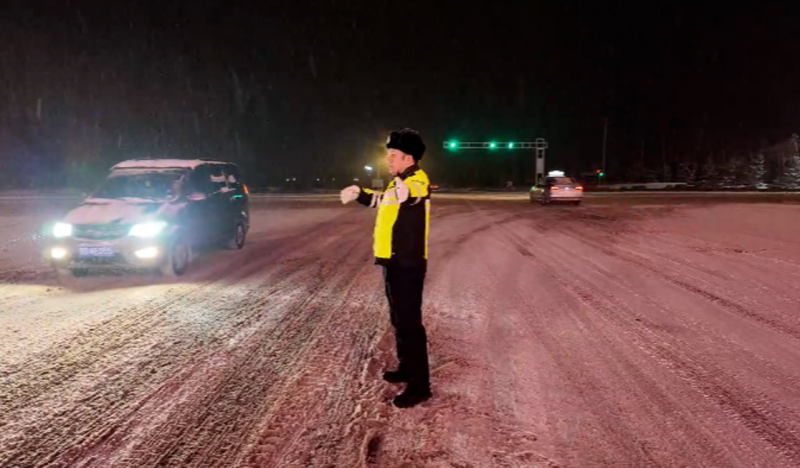 富锦市公安交管部门闻雪而动,全警坚守岗位,以风雪为“战场”,用身影作“路标”。值守民警顶风冒雪,随时为群众提供求助、咨询服务。交警们身着荧光绿反光背心,穿梭在车流与人群间,叮嘱车主“雪天慢行”,护送老人、孩童安全通过结冰路面,指引路线,成为群众眼中的“移动路标”。