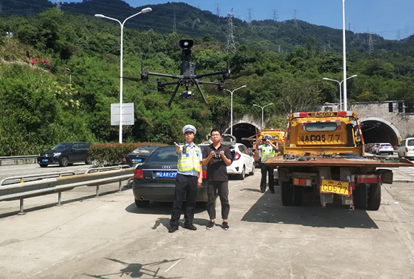 福州交警使用“无人机+探头”严查机动车占用应急车道
