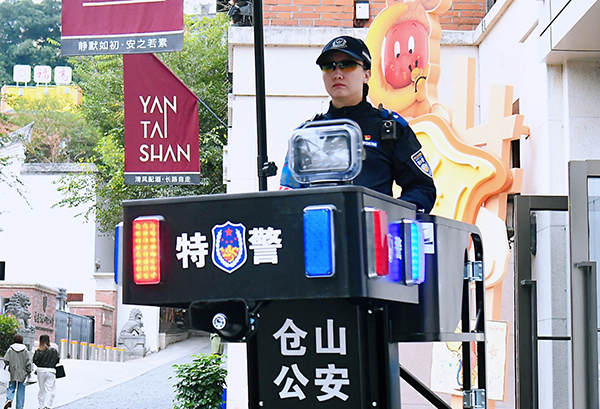 烟台山警务站“烟岚”女子机动队在景区巡逻
