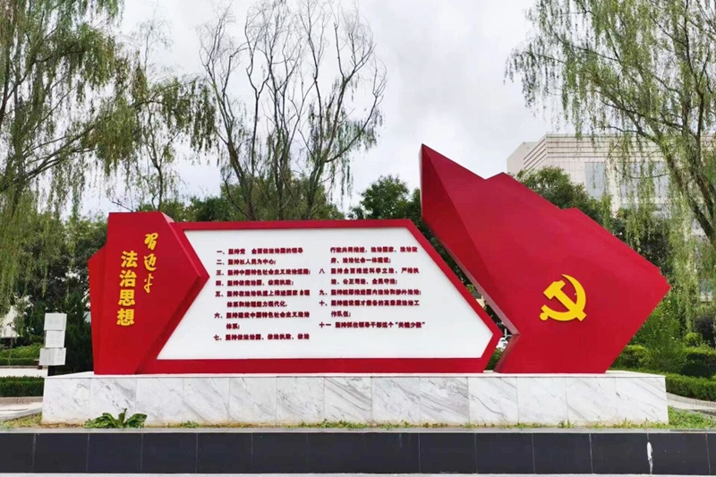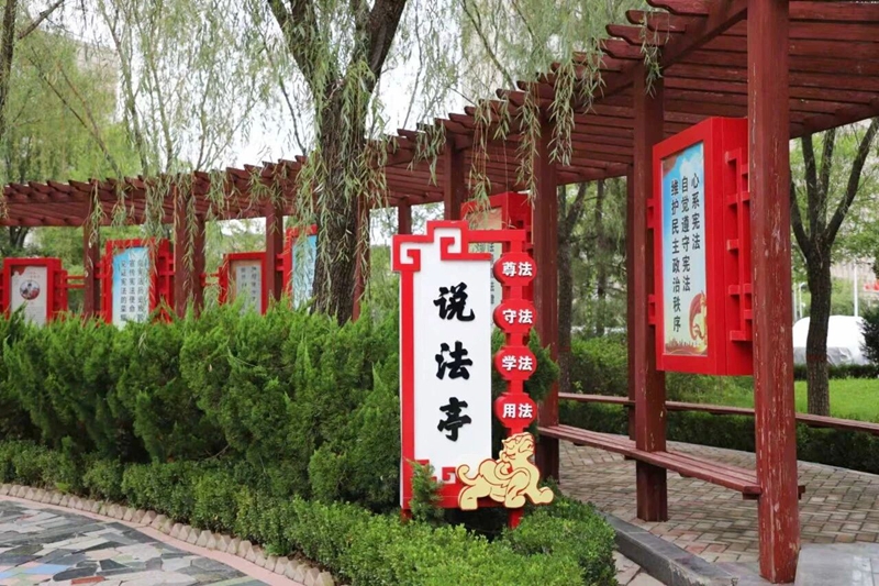 在民勤县城北新区的人民公园一角,法治悄然“生长”。在人民公园原有自然景观的基础上,大量的法治文化元素,通过景观造型、装饰艺术等手法,将法治文化融入公园风景。散步时抬头可见法治标语,休憩时能细读法律故事,让尊法学法守法用法的良好氛围,深深扎根在群众心中。