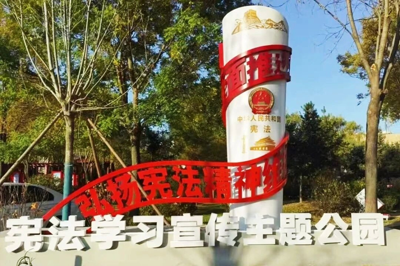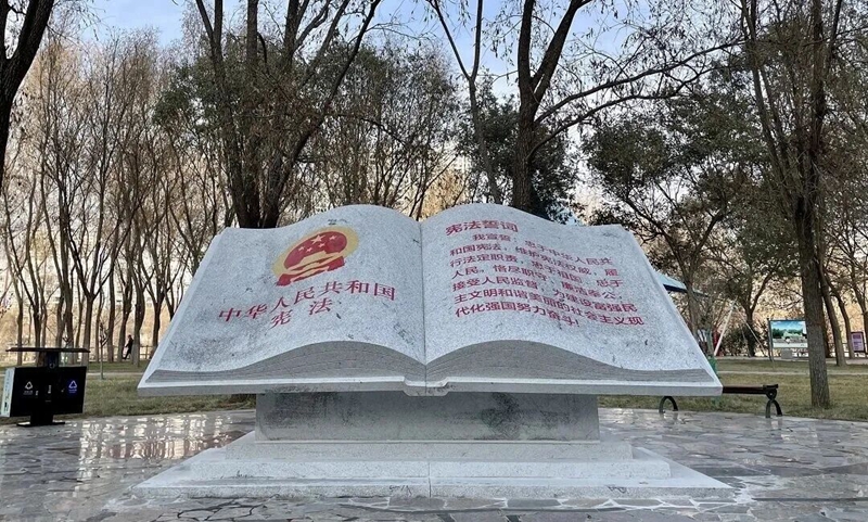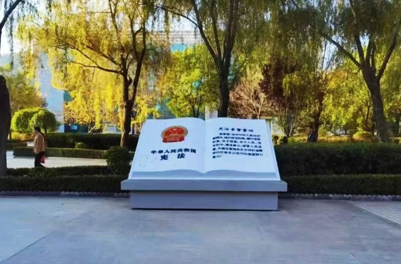 庆阳市镇原县宪法学习宣传主题公园里,藏着古今法治的对话。园内,以宪法、宪法誓词为核心元素的宪法雕塑格外醒目,习近平法治思想展示区、宪法宣誓台、法治廊道、古人说法、王符论法等十余处小景观依次展现,“立法议事台”“说法亭”等功能区域不时传来讨论议事、普法宣讲的声音,让冰冷的法律条文变成了可触摸、可感知的生活智慧。
