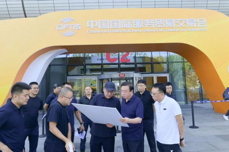 ▲董亦军(右四)在2023年中国国际服务贸易交易会,对交通服务保障工作进行现场踏勘。